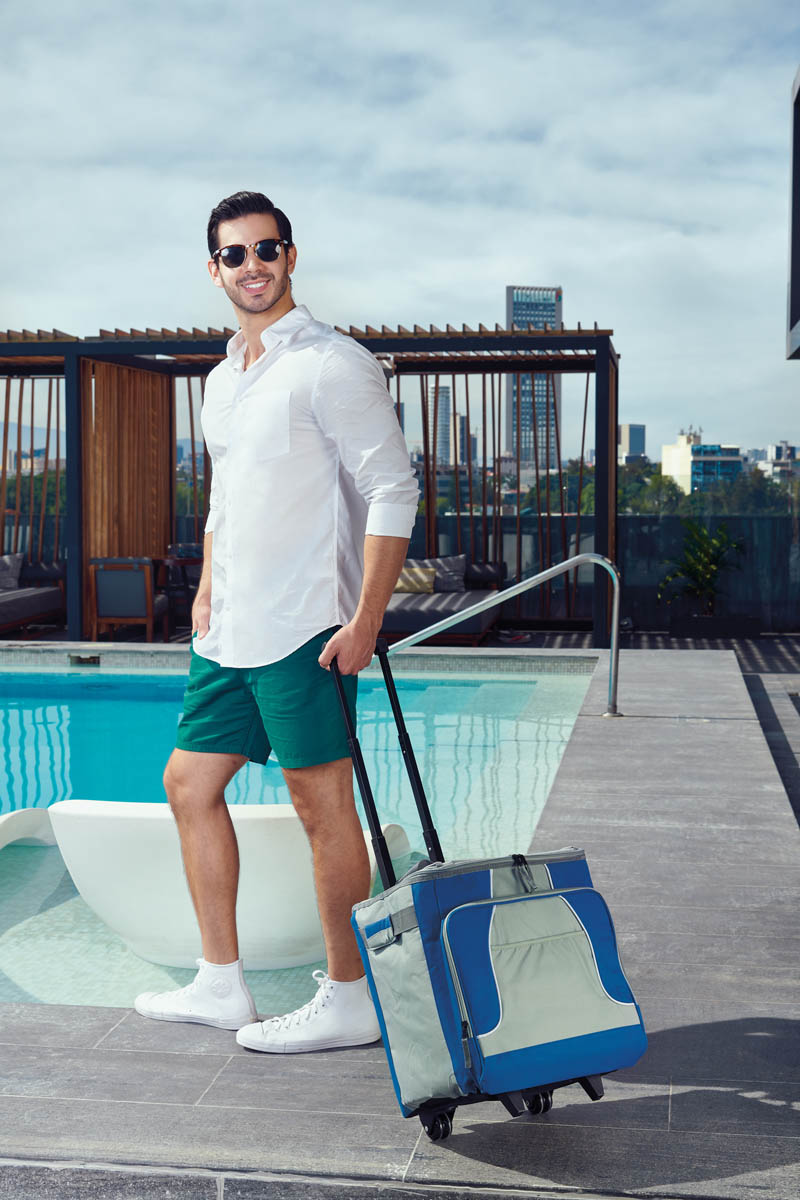 HIELERA TROLLEY OSLO(Interior plastificado impermeable. Bolsa frontal y 2 compartimentos con cierre. Agarraderas laterales. Mecanismo trolley.)