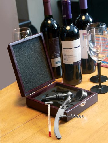 SET PARA VINOS MEDITERRáNEO(Incluye sacacorchos con navaja, stopper, arillo, termómetro y cortador.)