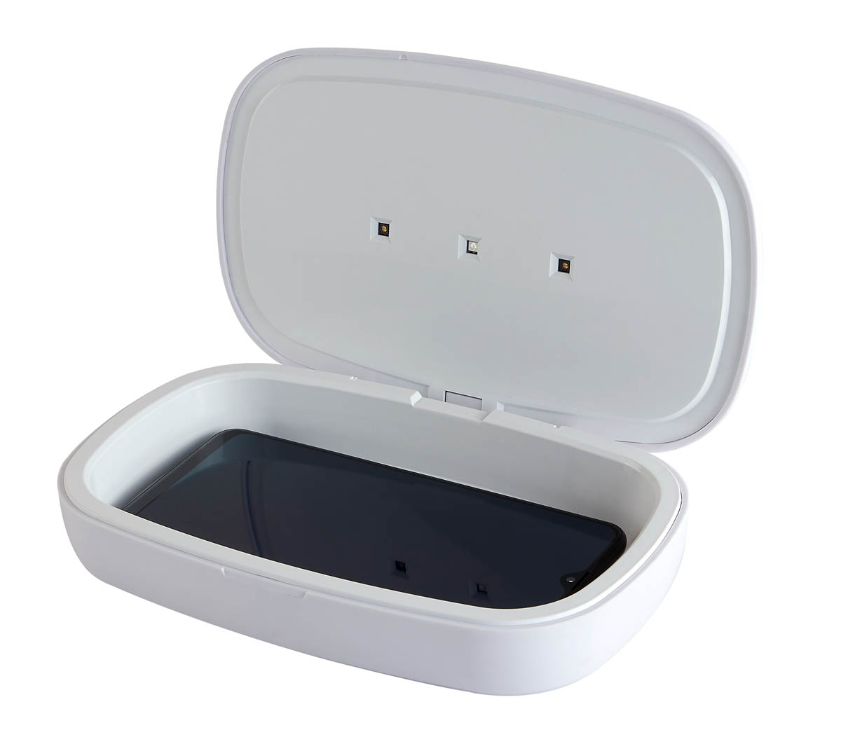 CAJA CON LUZ UV SANITIZADORA Y CARGADOR NAGOYA(Caja con luz UV sanitizadora, para celular, no reflejar la luz UV directo a tu cara o piel. Incluye cable USB para fuente alimentadora. Con cargador inalámbrico wireless.)