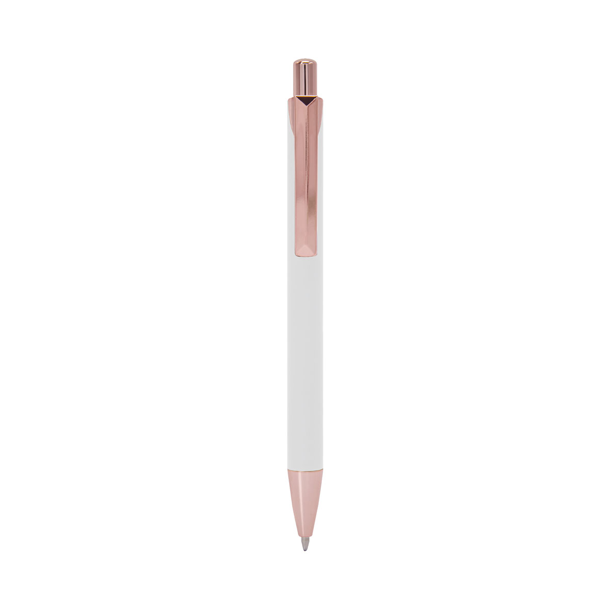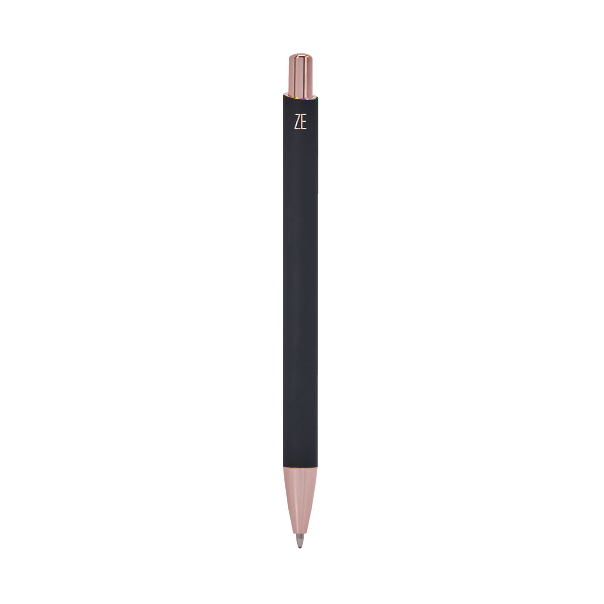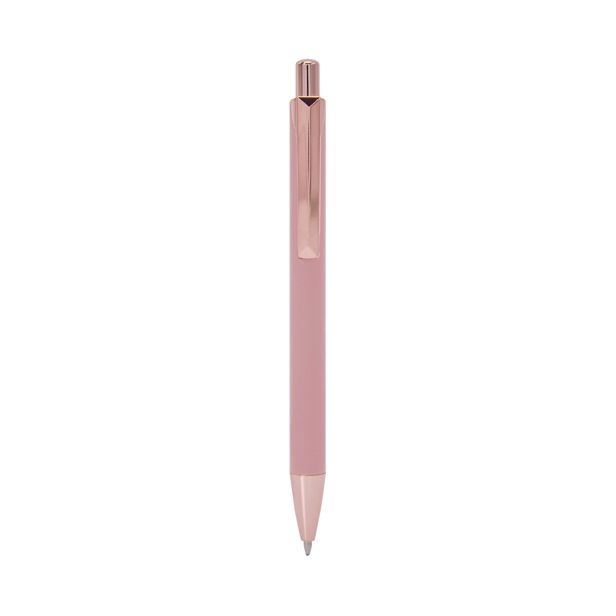 BOLíGRAFO TIFT(Bolígrafo metálico con terminado tipo rubber. Botón, clip y punta en rose gold. Mecanismo pulsador. Incluye funda.)