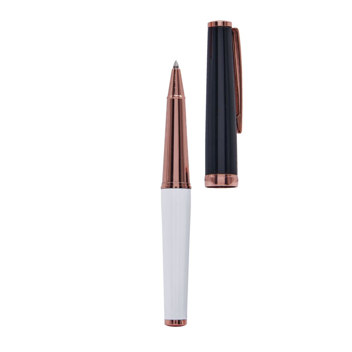 BOLíGRAFO AFFARI(Bolígrafo metálico con tapón. Cuerpo en color blanco con punta dorada. Tapón en color negro y clip dorado. Incluye funda.)