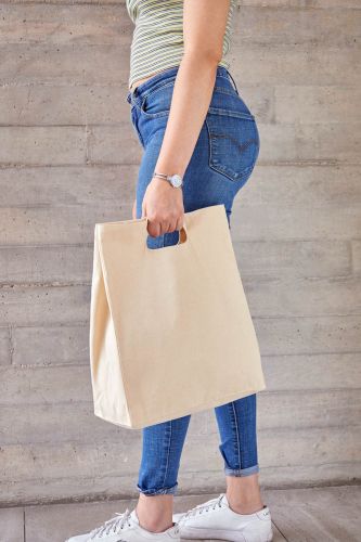 BOLSA(Bolsa con fuelle y broche metálico a los costados para expandir y cerrar. Cuerpo de algodón tipo canvas.)