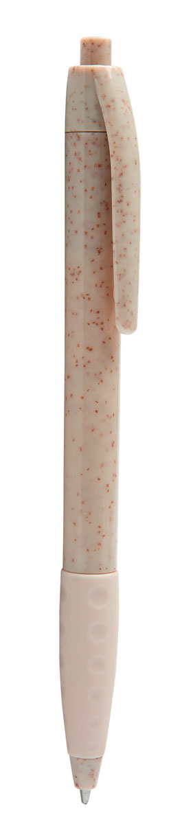 Material eco-friendly a base de fibra de trigo. Incluye grip de silicón antiderrapante. Mecanismo pulsador.