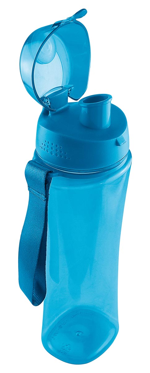 Tapa de rosca con boquilla y sobre tapa de cierre a presión. Incluye asa de tela y caja individual.