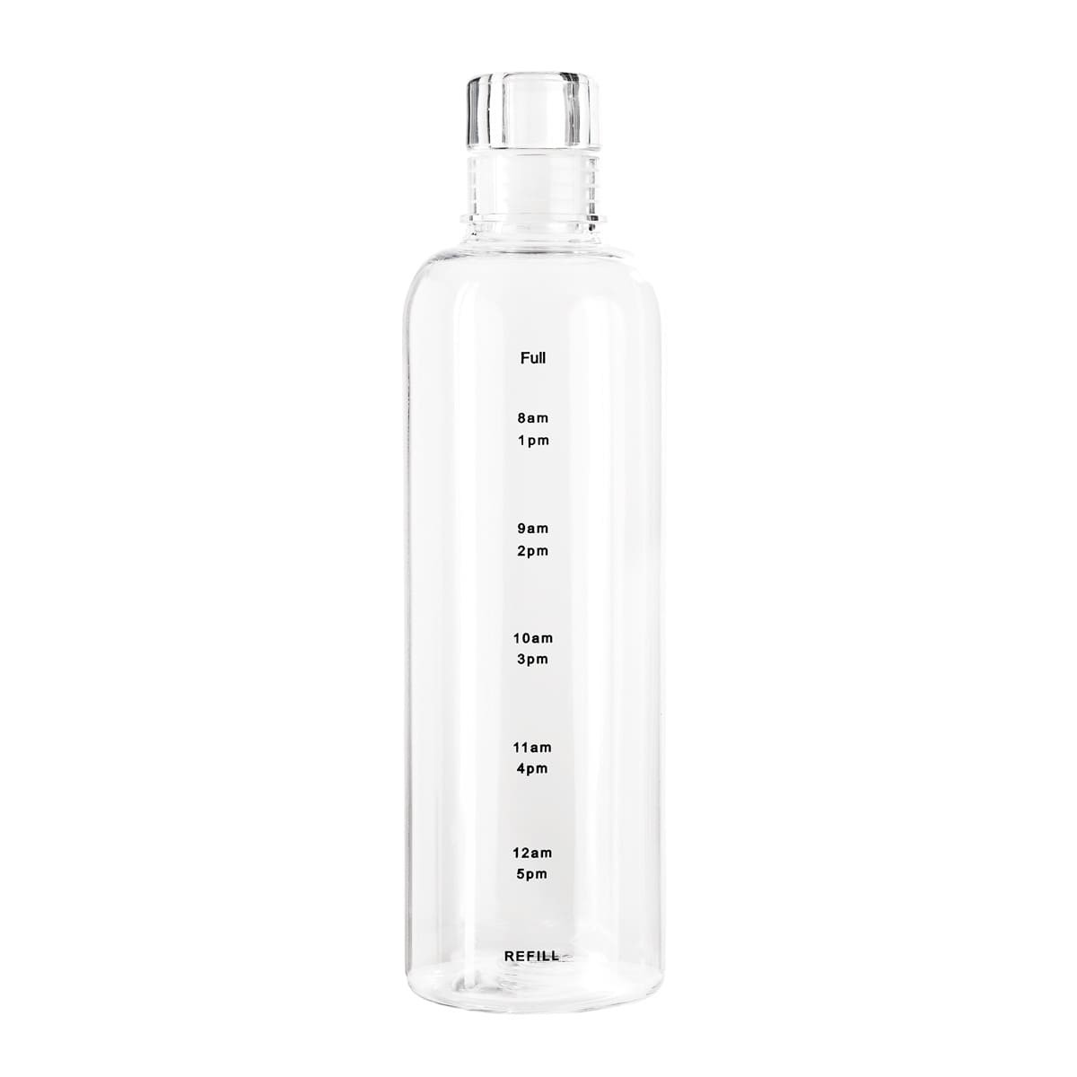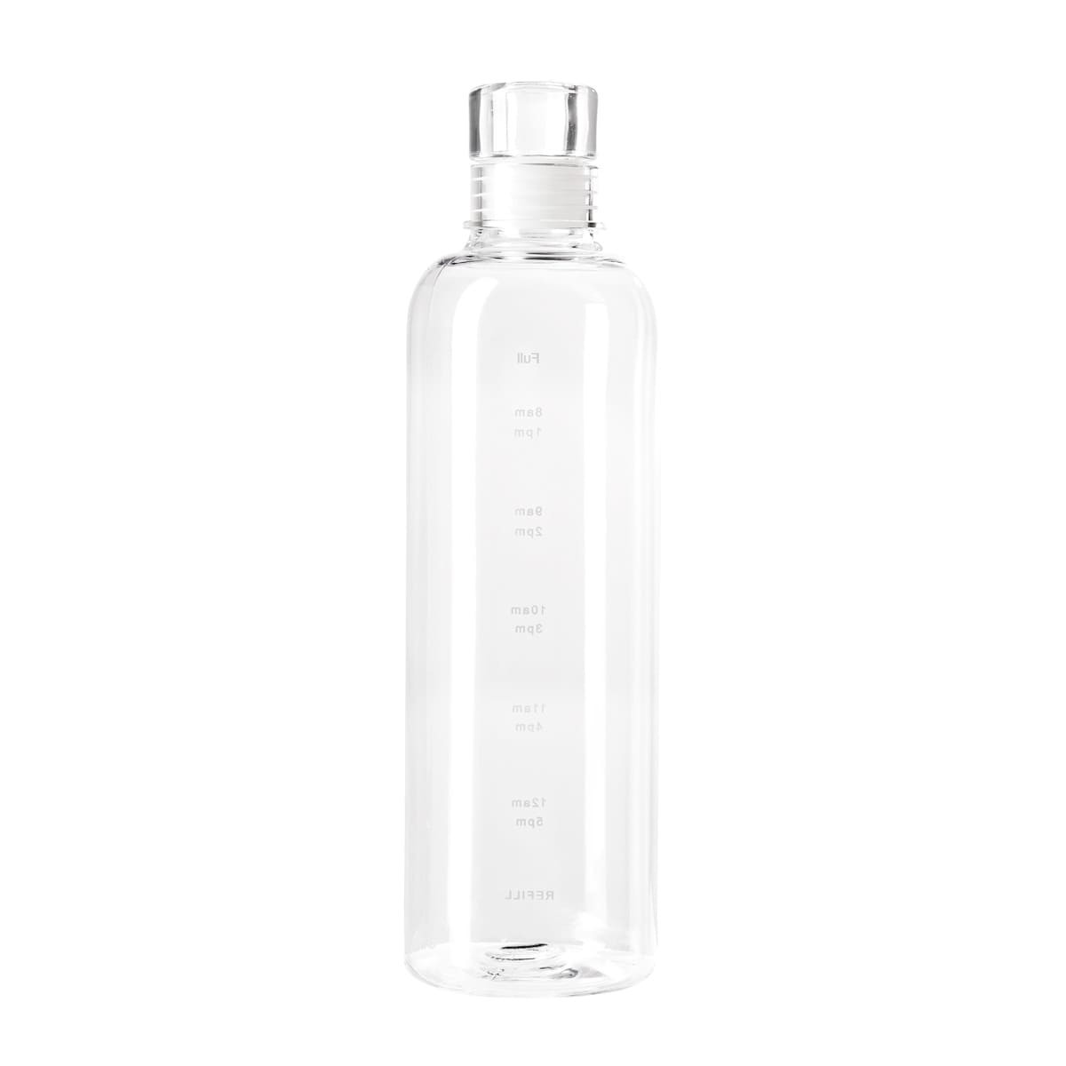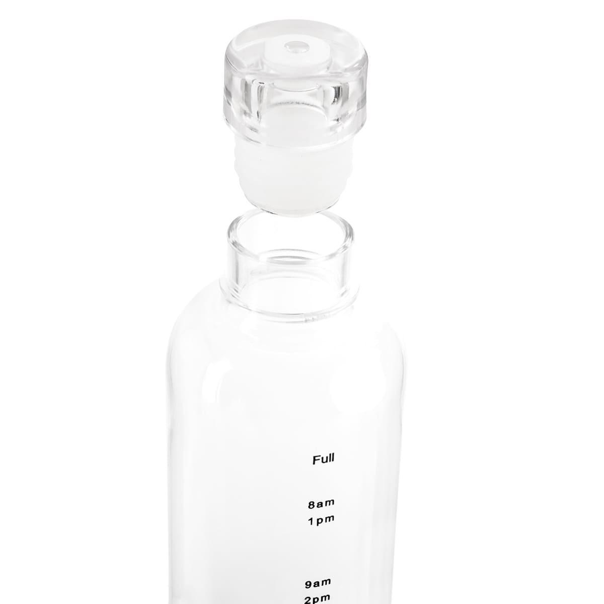Tapa con sistema push que evita derrames. Cuerpo transparente con indicador de horas para motivar y controlar tus hábitos de hidratación.