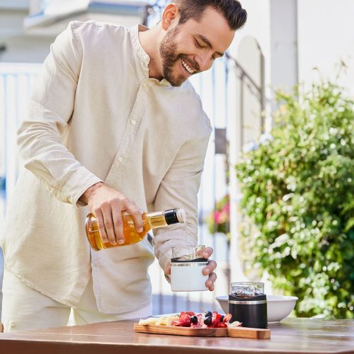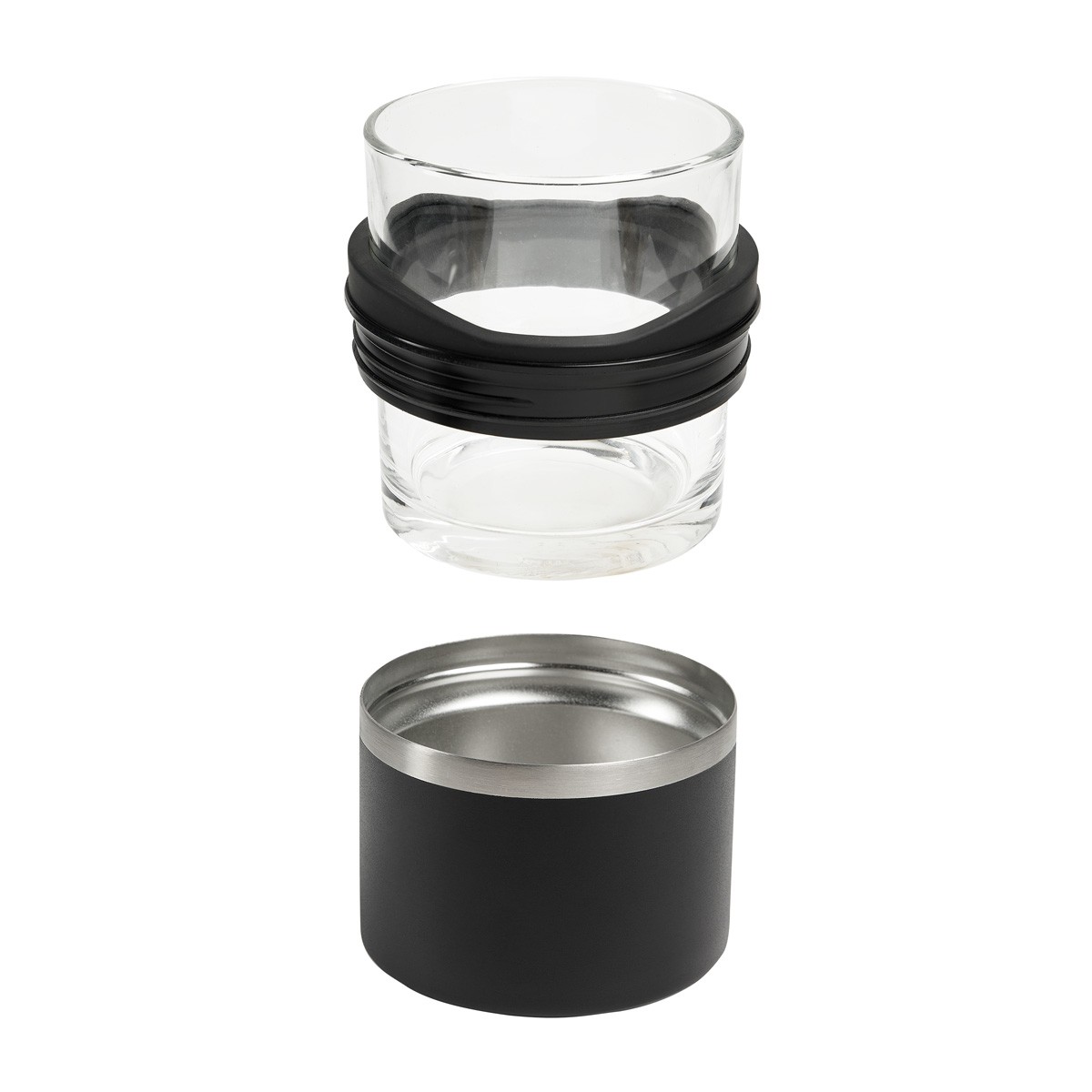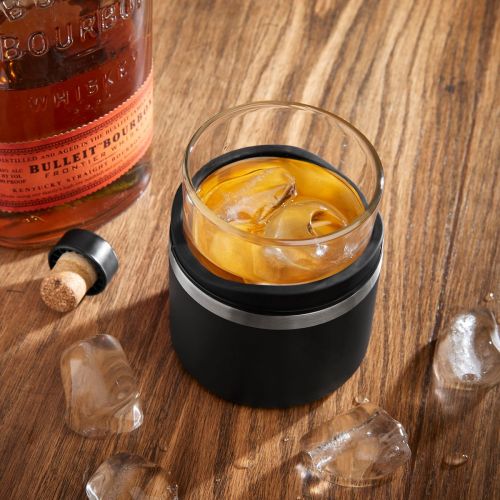 Disfruta de tu whisky favorito a cualquier hora del día. Incluye vaso de cristal y funda doble pared de acero inoxidable diseñado para mantener tu bebida fría sin diluirla. Ideal para los verdaderos amantes del whisky, este vaso combina elegancia y