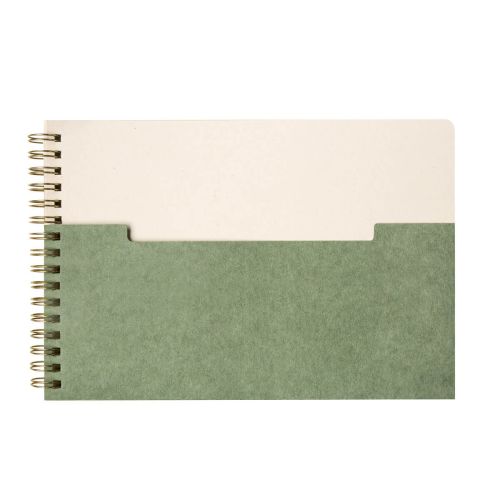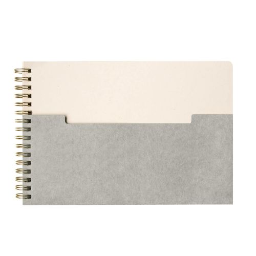 Libreta de espiral con 80 hojas a rayas. Cubierta de carton y bolsillo frontal para llevar pequenos documentos. Fabricada con papel de algodon, es una opcion ecologica y respetuosa con el medio ambiente. Su formato horizontal, la hace diferente y practica