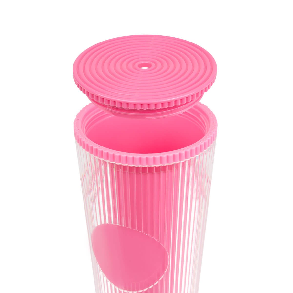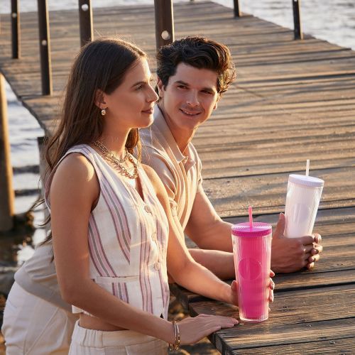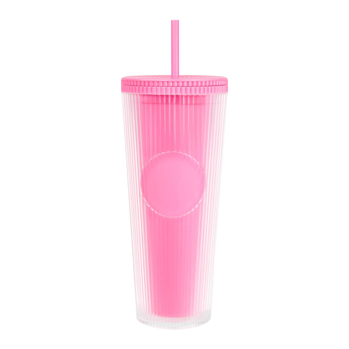 Vaso doble pared. Pared interna y externa de plastico. Tapa de rosca y ranura para popote. Disenado moderno de acabado texturizado, con lineas en relieve le dan un toque unico y moderno. Ideal para oficina, escuela o para disfrutar de tus bebidas mientras