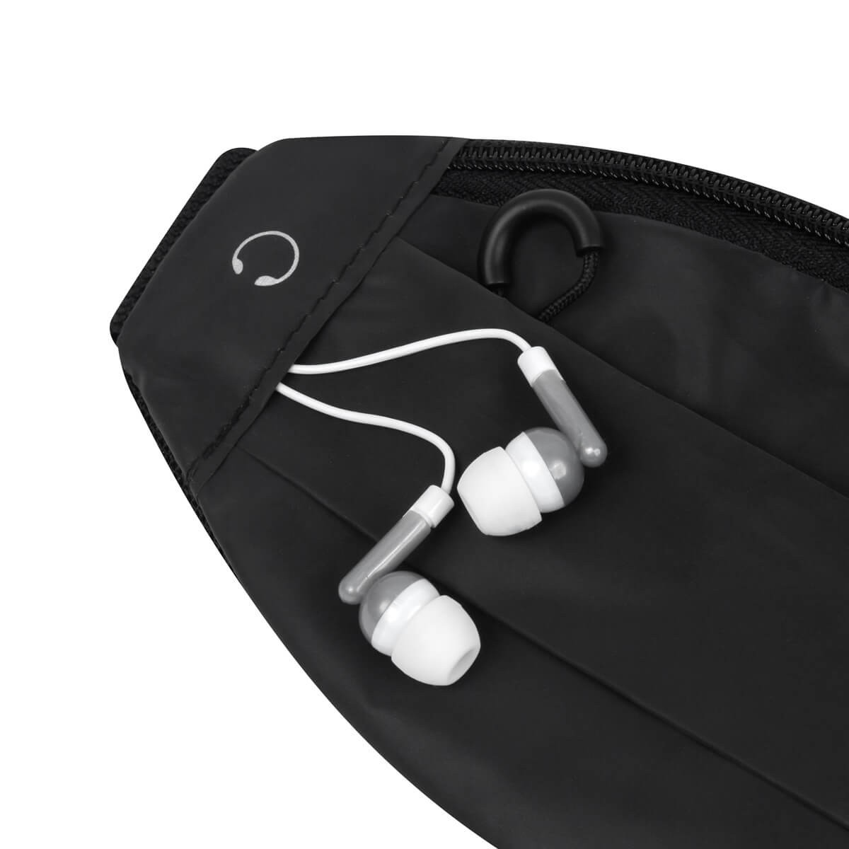 Cangurera deportiva perfecta para los amantes del running. Su compartimento principal tiene un espacio para smartphone e incluye una apertura para audifonos con cable. El compartimento frontal es ideal para objetos pequenos. Su correa ajustable con broche