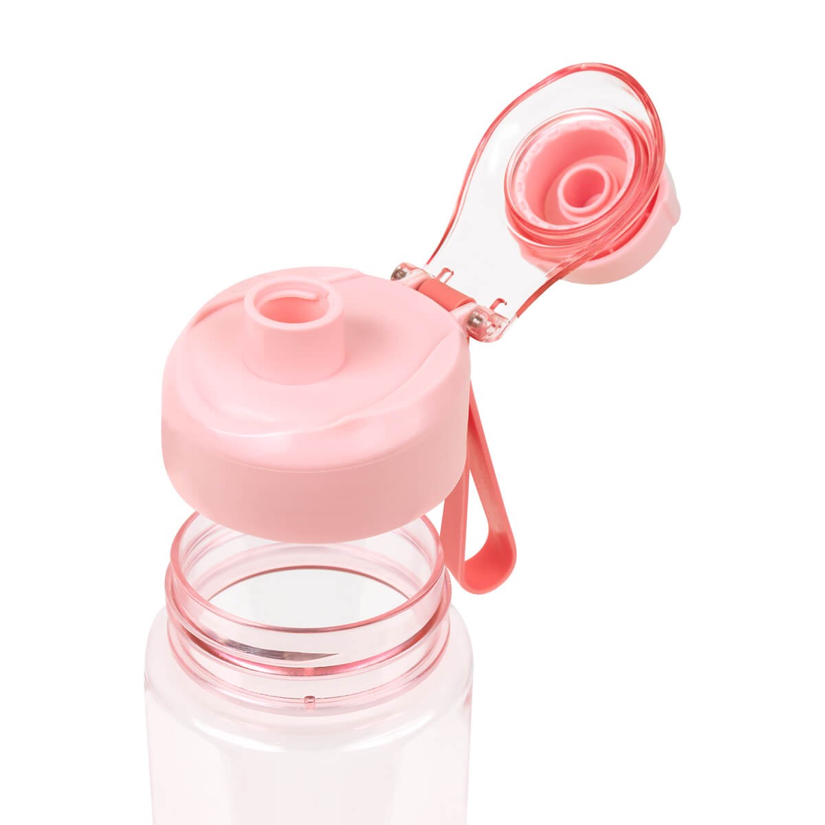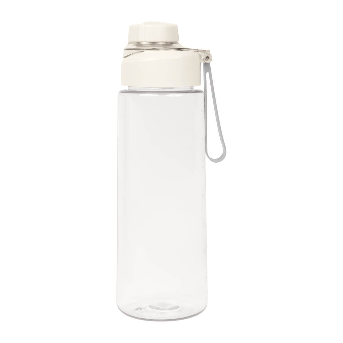 Cilindro de plástico de una pared. Tapa de plástico con sistema de rosca y sobretapa para la boquilla. Cuenta con asa de silicón para llevarlo cómodamente e indicador de mililitros. Perfecto para el día a día.