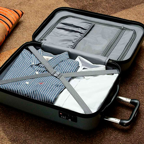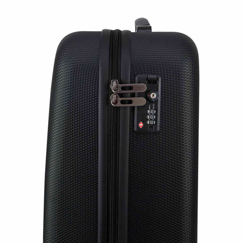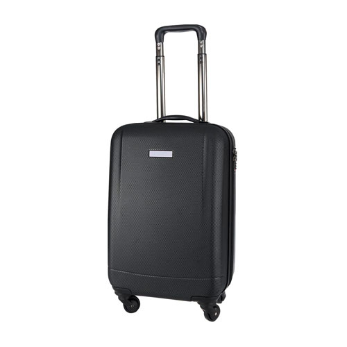 Maleta trolley con 4 ruedas. Incluye 4 compartimentos interiores, placa metálica removible para fácil grabado y candado de seguridad TSA con combinación de 3 dígitos. Asa de agarre superior.