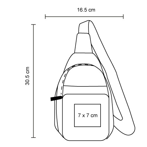 Bolsa de hombro de poliéster con compartimento principal con bolsillo interno; bolsa frontal con cierre y compartimento abierto; así como correa ajustable.