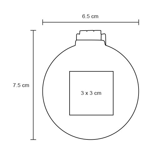 Medidas: 6.5 x 7.5 Área Impresión: 3 x 3 cm