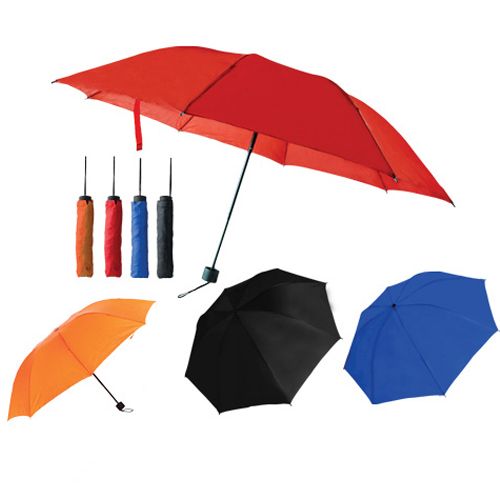 Paraguas de bolsillo antiviento; 8 gajos; mango de plástico con acabado rubber y funda.