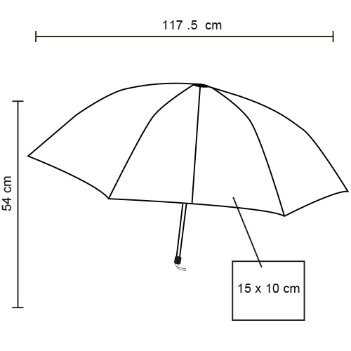 Paraguas de bolsillo con sistema de apertura y cierre automático; 8 gajos; broche de velcro; mango de plástico con asa e incluye funda.