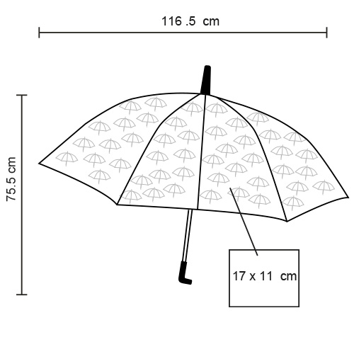Paraguas mágico de apertura automática; 8 gajos; mango de plástico; broche de velcro y figuras de paraguas que se intensifican al contacto con el agua.