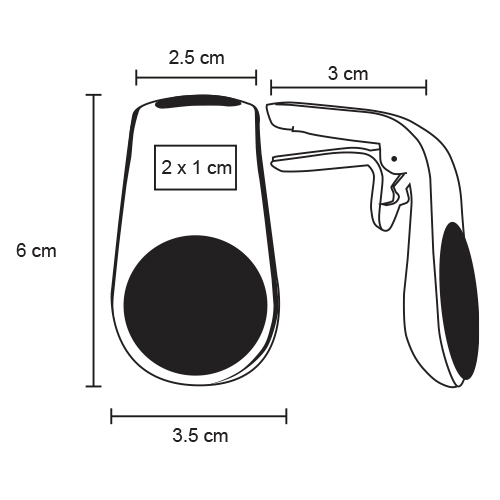 Sujetador de auto para dispositivos móviles. Incluye imán que se adhiere a la parte trasera del móvil.