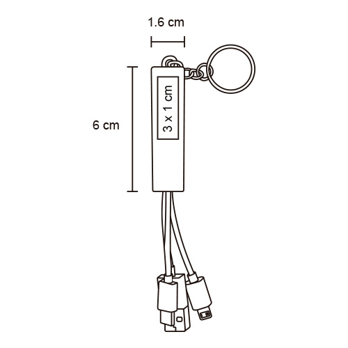 Cable multi USB 3 en 1 con luz y aro para llaves; incluye: 1 cable USB; 1 cable lightning y 1 cable tipo C.