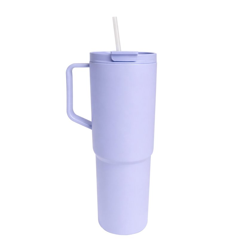 Termo de plástico de una sola pared con asa tapa de cierre a presión boquilla de seguridad y popote.