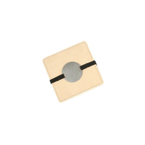 Juego de 4 piezas de porta vasos fabricado en curpiel, forma cuadrada, prácticos y elegantes, fáciles de limpiar y de guardar, ya que cuentan con una banda elástica con una placa de metal circular. Accesorios funcionales que ayudan a mantener el orden y e