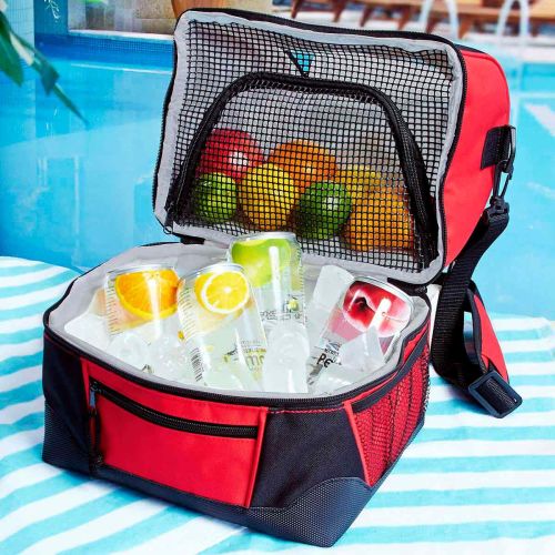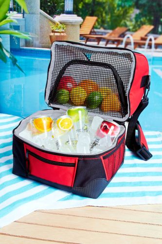 HIELERA JENA(Interior plastificado impermeable. Bolsa principal, red interna para separar, bolsa frontal con cierre, bolsa lateral de red y correa ajustable.)