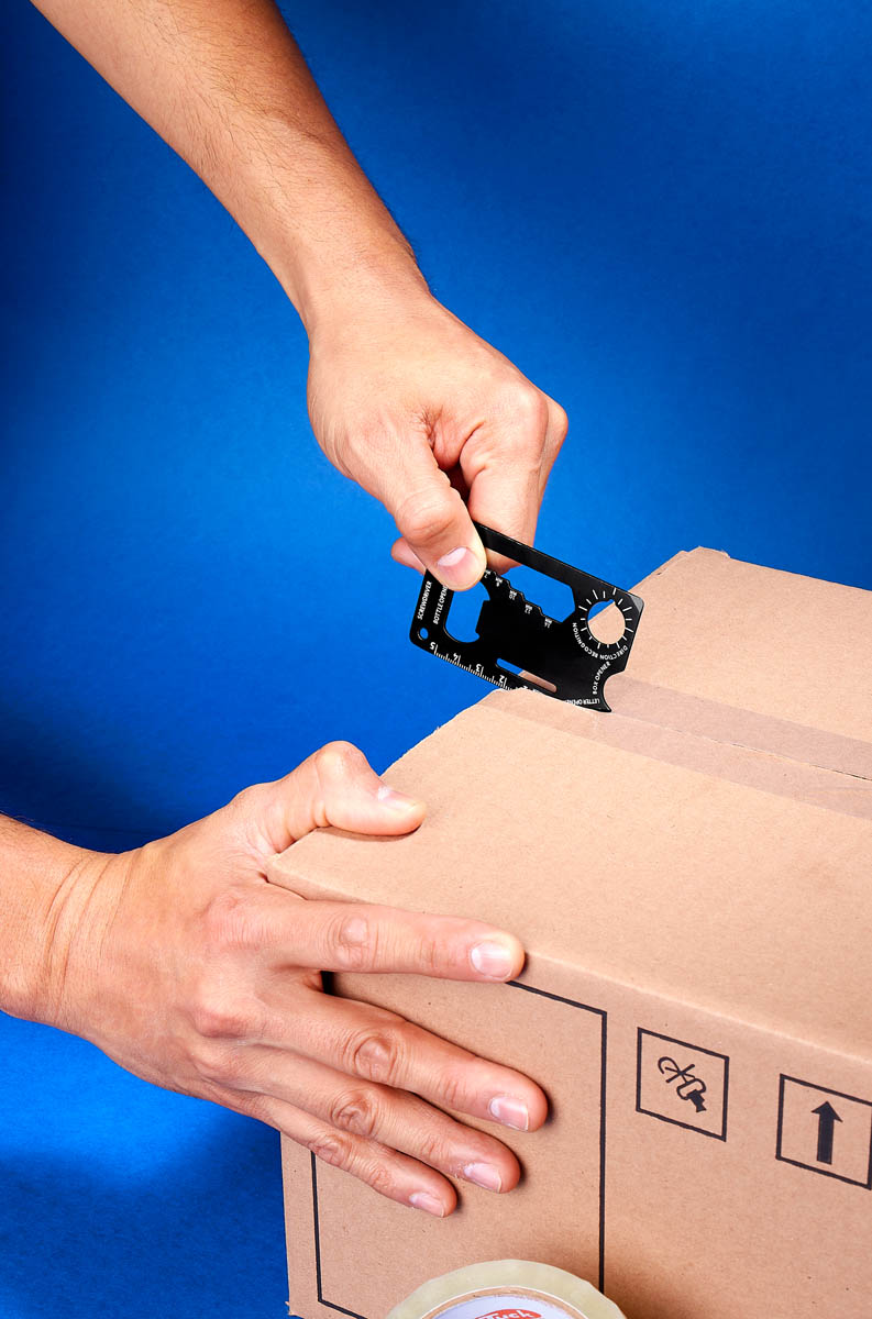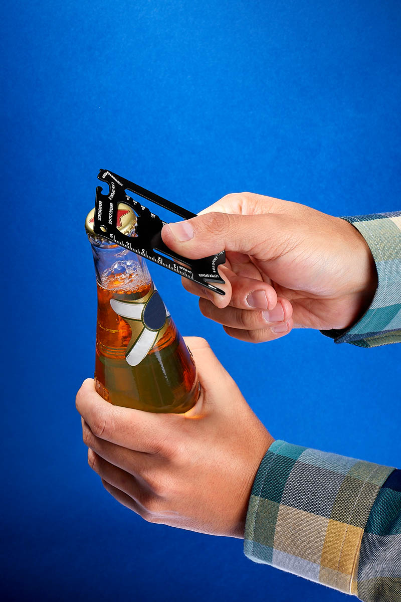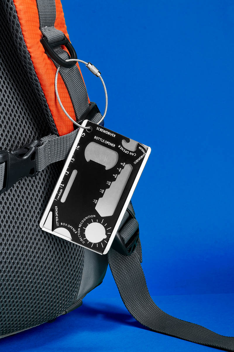 TARJETA MULTIHERRAMIENTAS COMALA(Contiene función de desarmador, abrecartas, destapador, llave inglesa, regla y pelador. Incluye aro para llavero.)