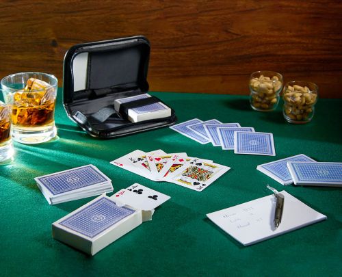 JUEGO DE CARTAS ROYAL(Estuche de curpiel con 2 barajas plastificadas, libreta y bolígrafo.)