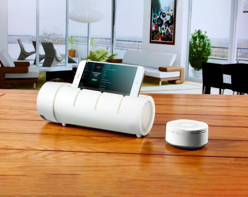 CILINDRO BOCINA SIRET(Cilindro con bocina bluetooth controles de volumen y reproducción de audio, función manos libres, disparador de cámara al sincronizar con el smartphone. Incluye cable USB y batería recargable. Base para tablet y smartphone. Bocina re