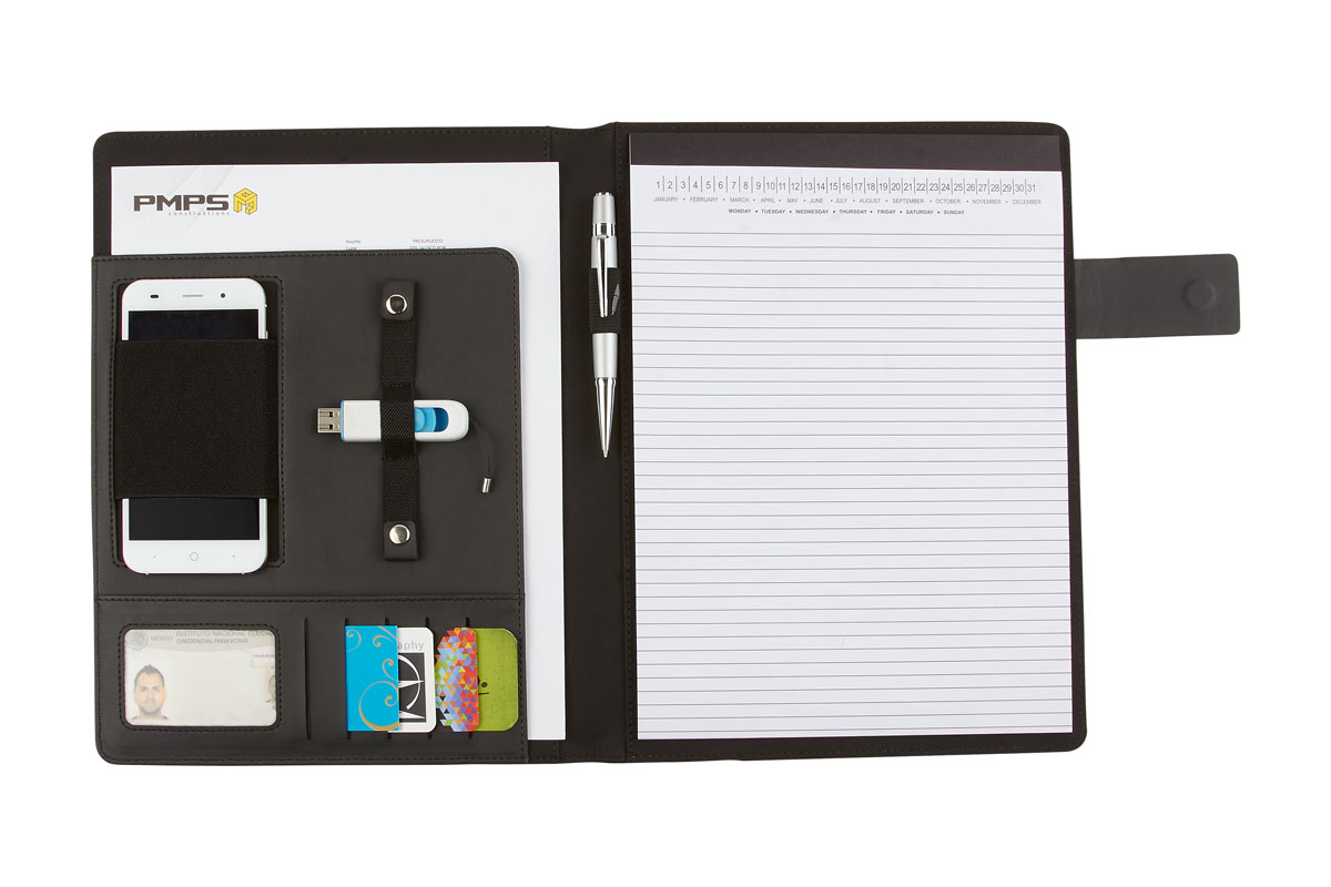 CARPETA MIRAM(Incluye block de raya tamaño A4 con 20 hojas, elástico para bolígrafo, compartimento para smartphone y tarjetas. Broche magnético. No incluye bolígrafo.)