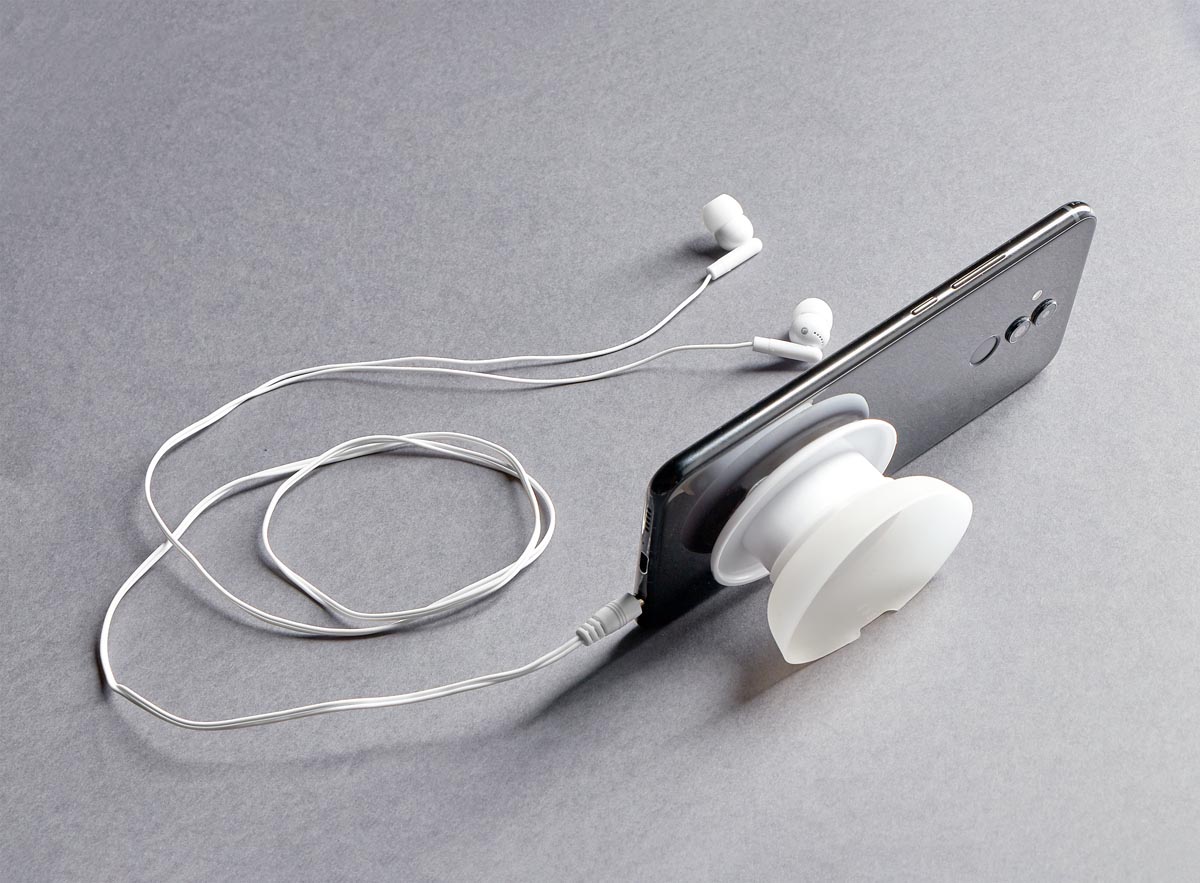 AUDíFONOS CICLE(Audífonos enrollables, base con ventosa para fácil sujeción. Función soporte para smartphone.)