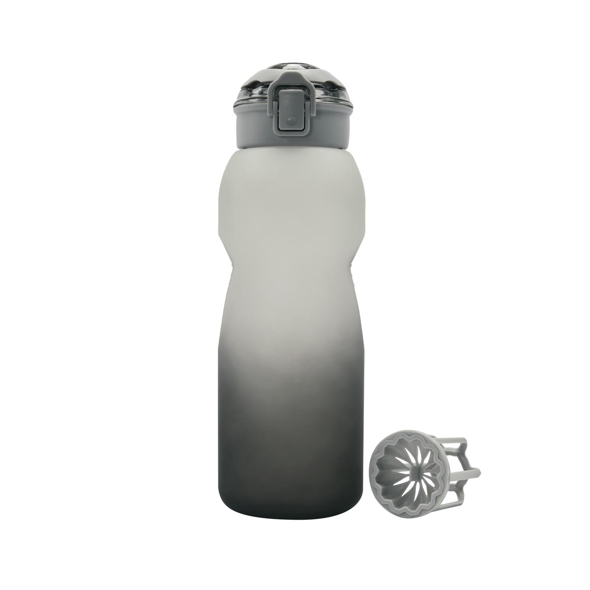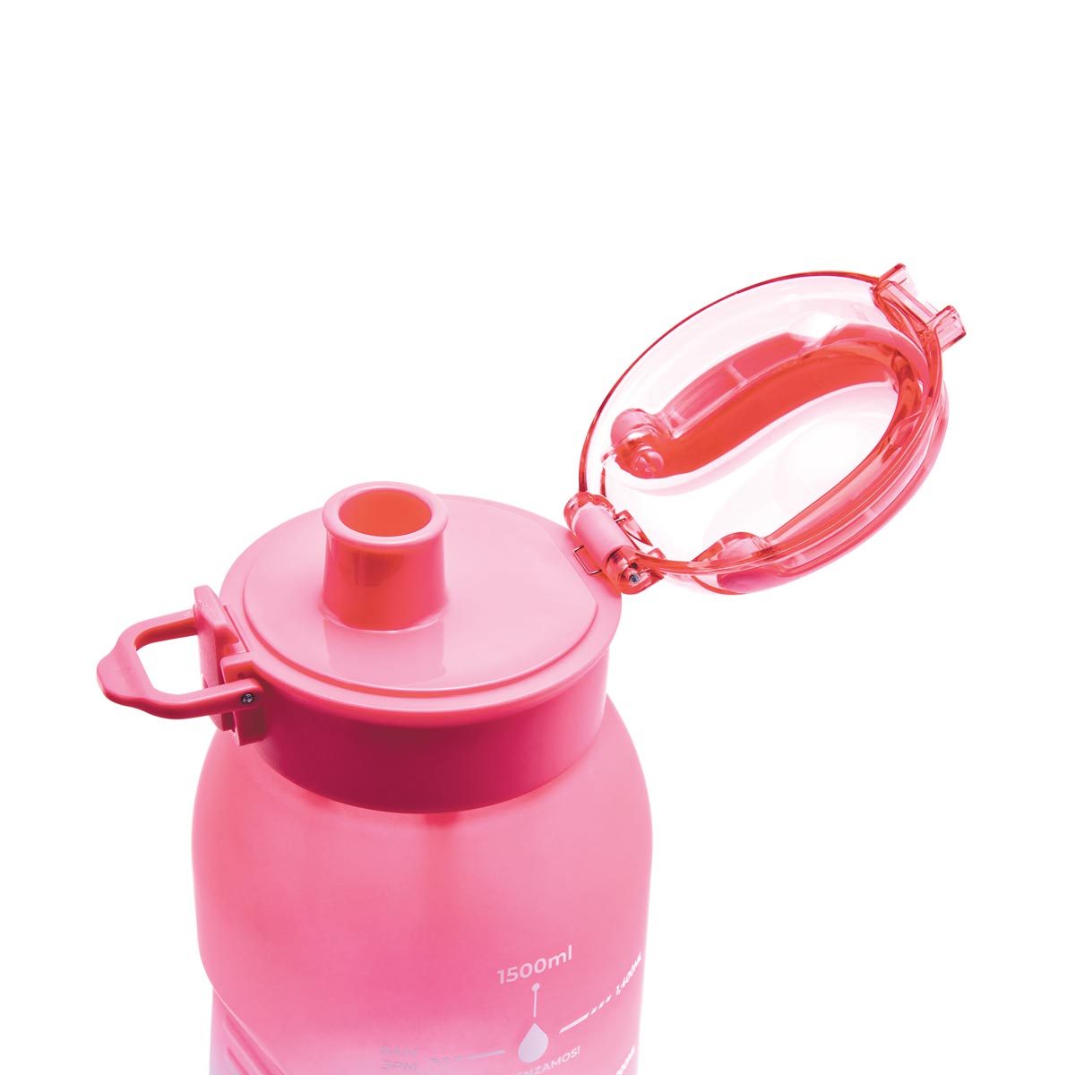 CILINDRO MADZI(Tapa de plástico con cierre de rosca y boquilla, sobretapa push con botón de seguridad y asa plegable. Cuerpo con terminado rubber, resaques laterales para un mejor agarre, indicador de mililitros y horas para motivar y controlar tus hábit