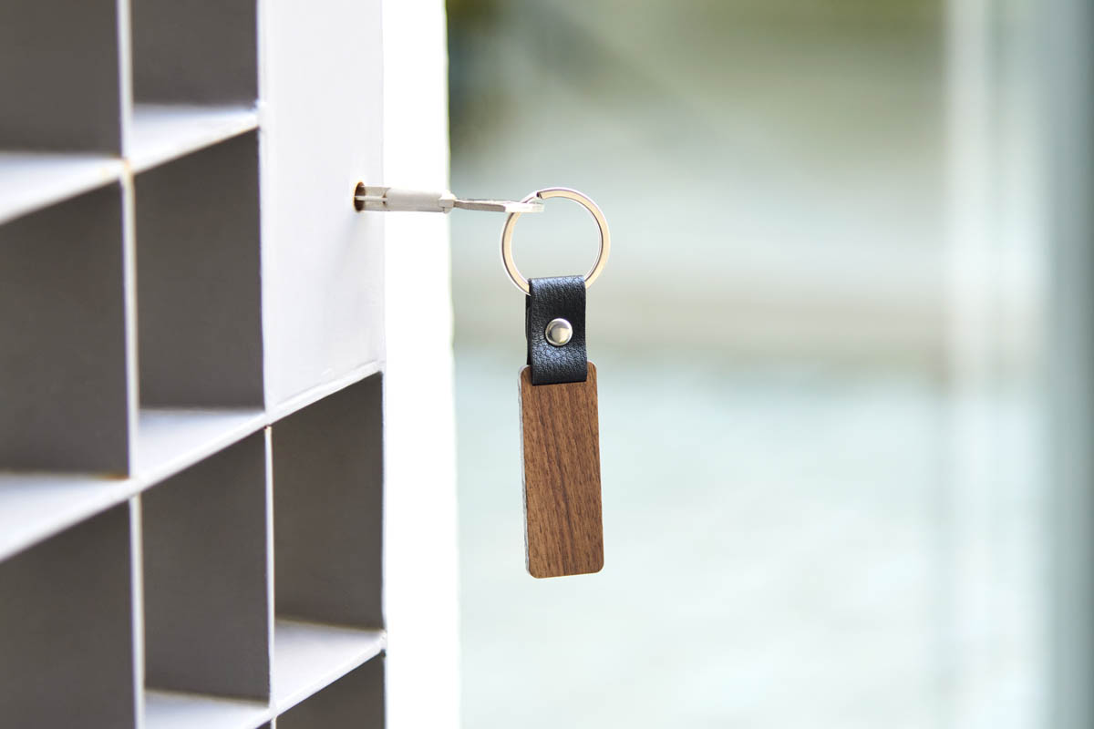 LLAVERO GALICIA(Llavero de madera con tira de curpiel.)