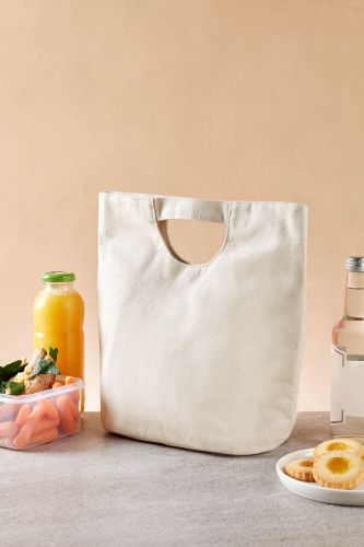 LONCHERA LUNCH AZUL(Lonchera de mano con fuelle en la base. Incluye boche de imán para cerrar. Asas con orificio de agarre.)