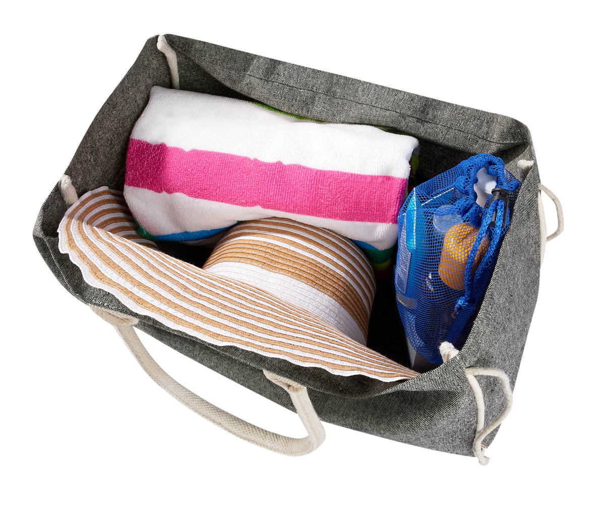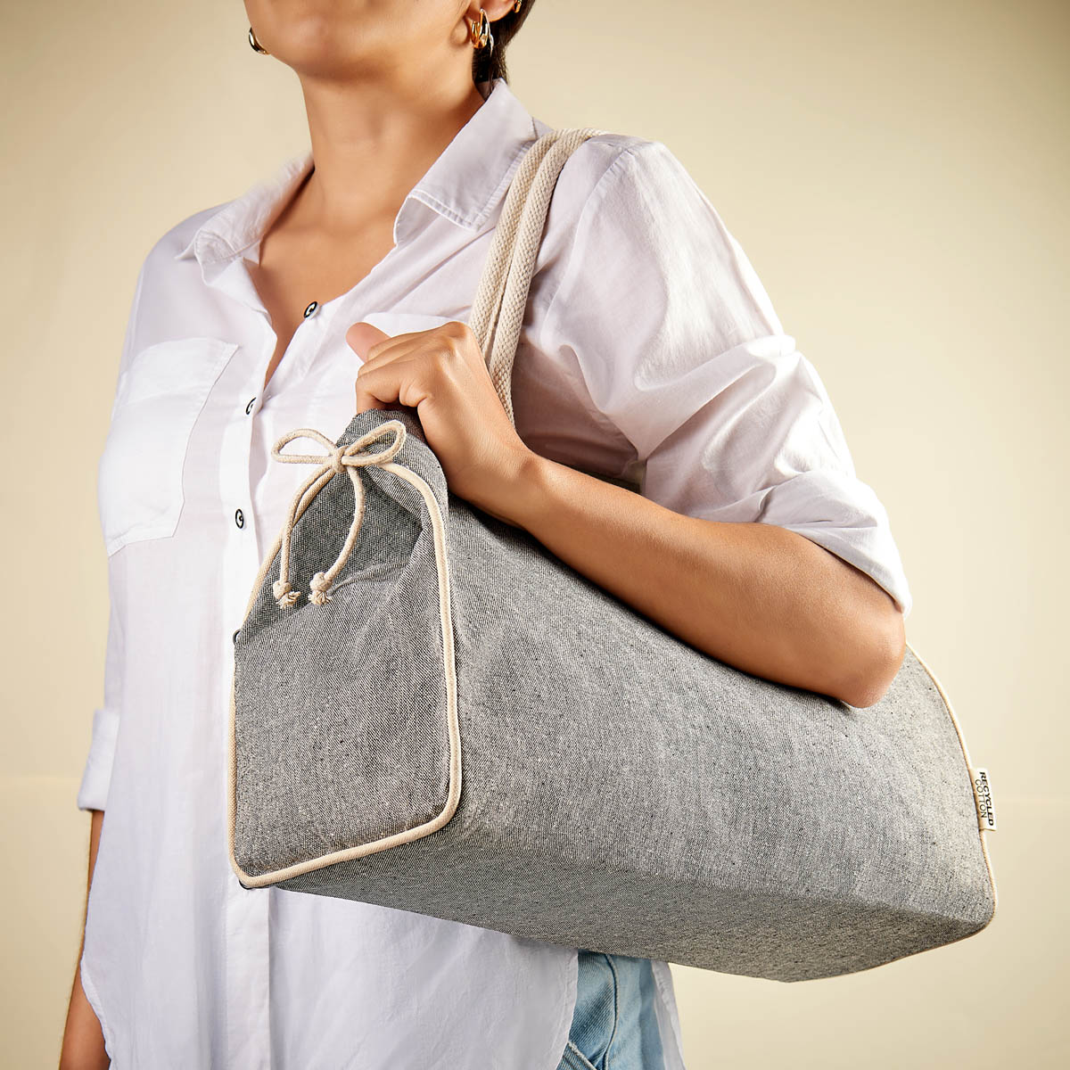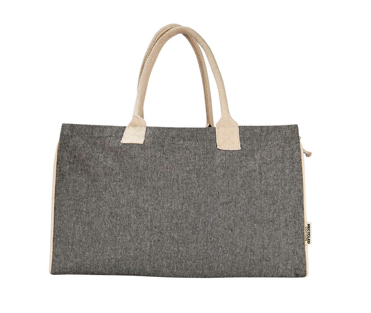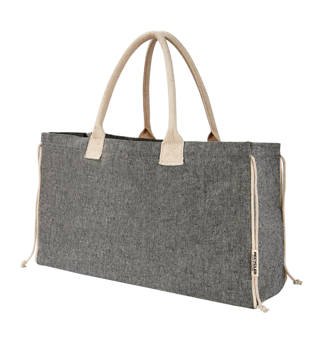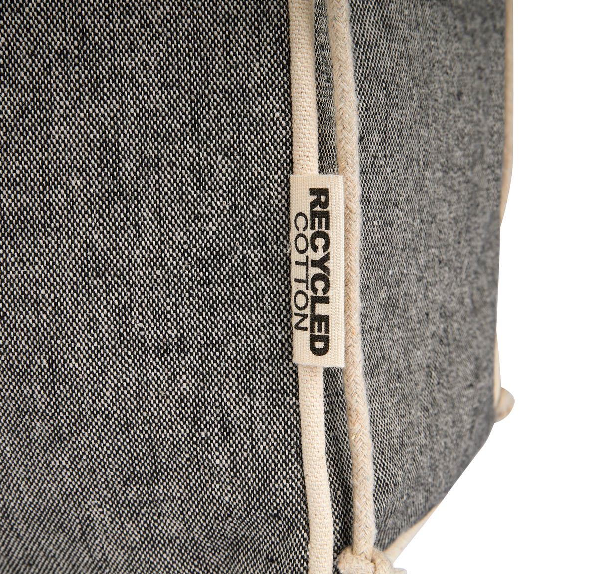 Bolsa ecológica de algodón reciclado. Incluye fuelle con laterales ajustables y base de cartón removible