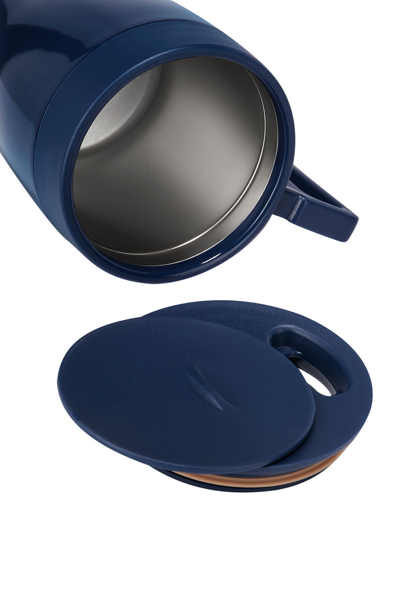 Doble pared cerrado al vacío. Pared interna y externa de acero inoxidable. Incluye tapa de plástico tipo push con una sobre tapa deslizable, asa cuadrada que facilita el agarre, base antiderrapante y caja individual.