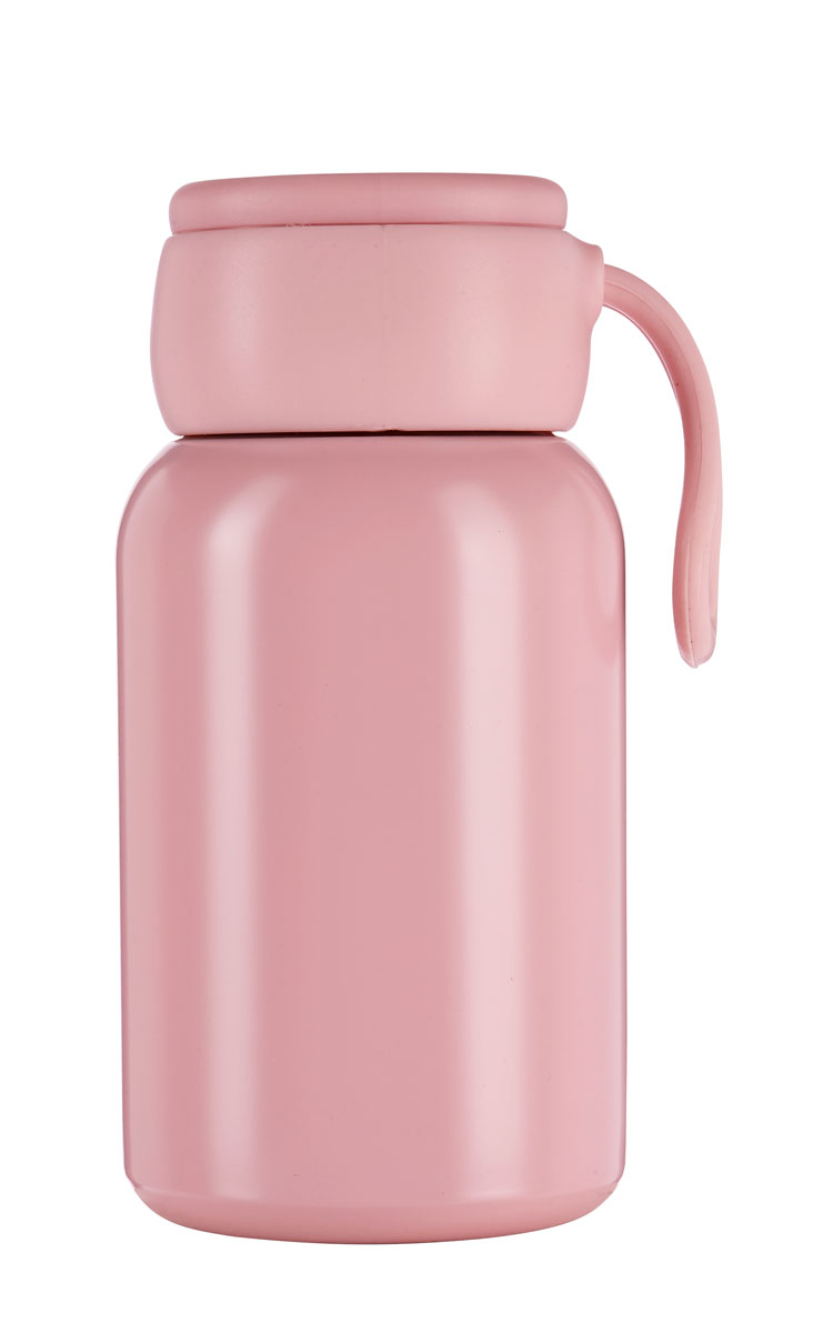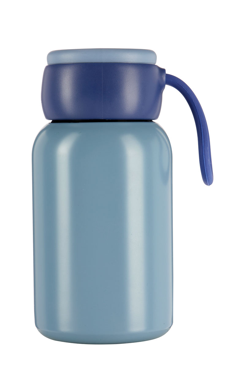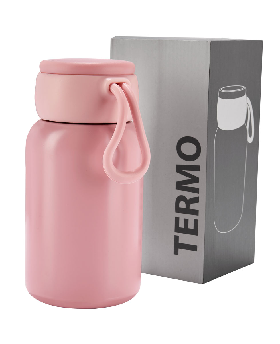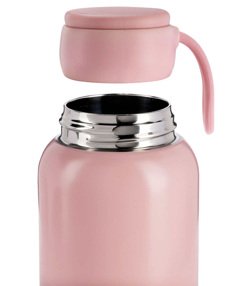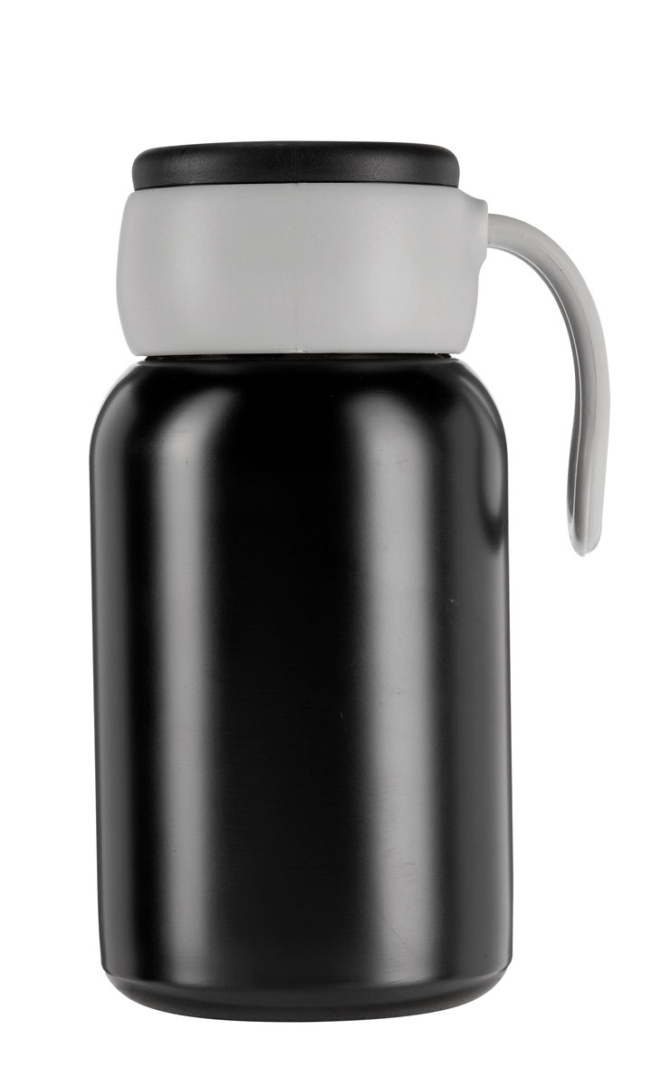 Doble pared. Cerrado al vacío. Pared interna y externa de acero inoxidable. Tapa de plástico bitono con sistema de rosca y asa de silicón. Mantiene temperatura caliente 6 hrs y temperatura fría 8 hrs aproximadamente. Incluye caja individual.