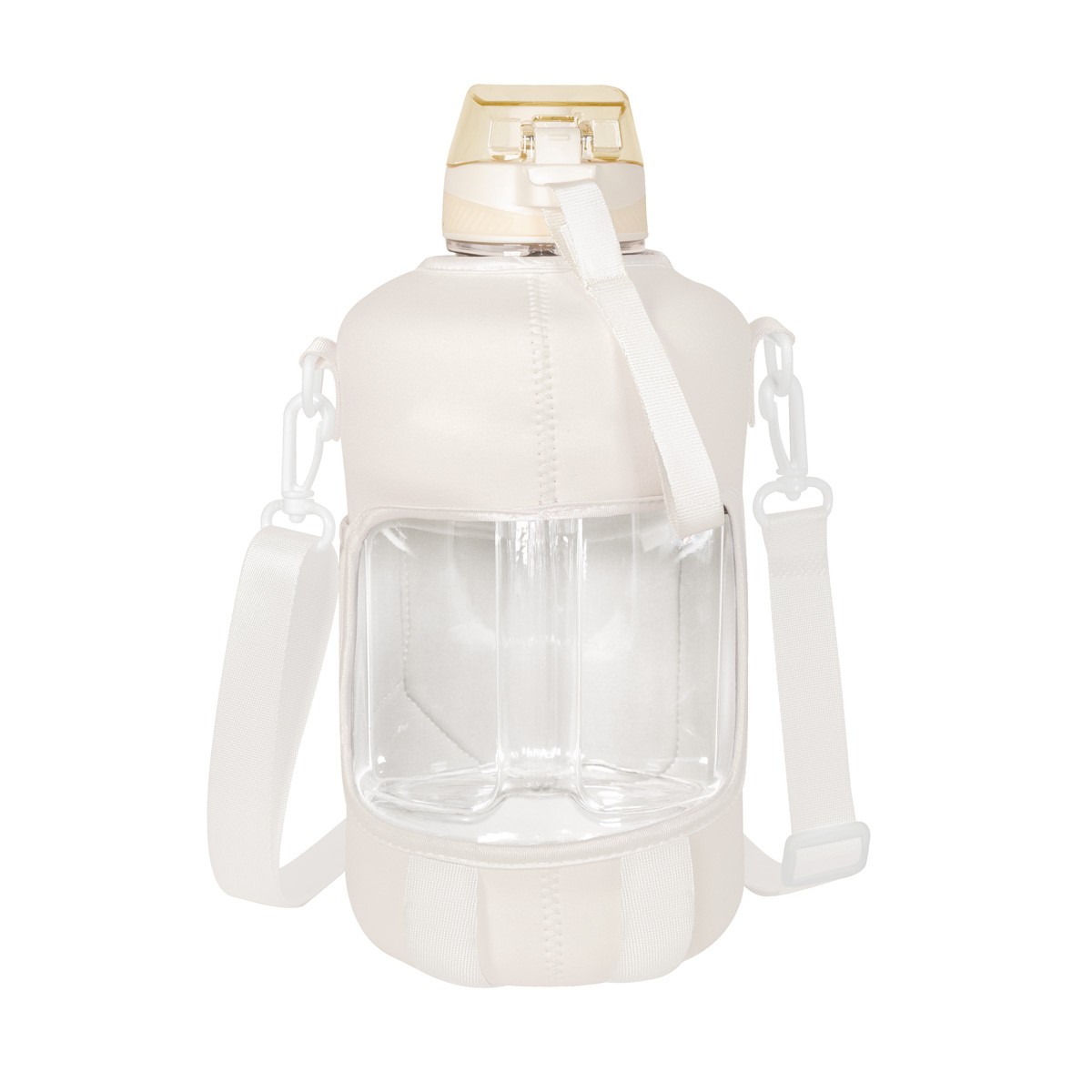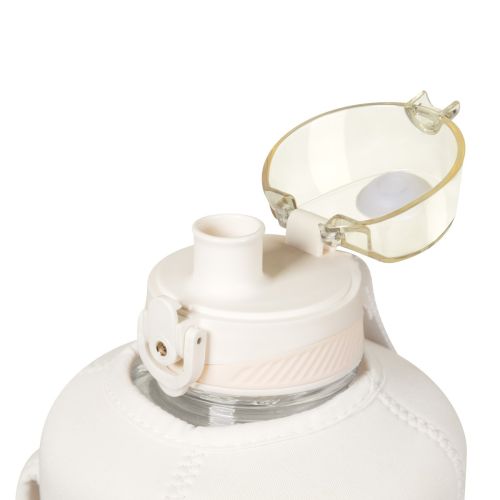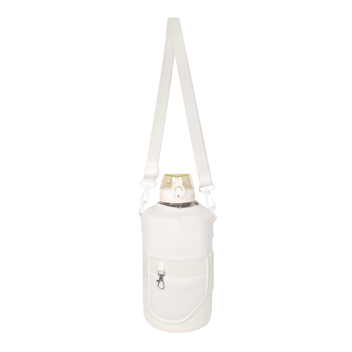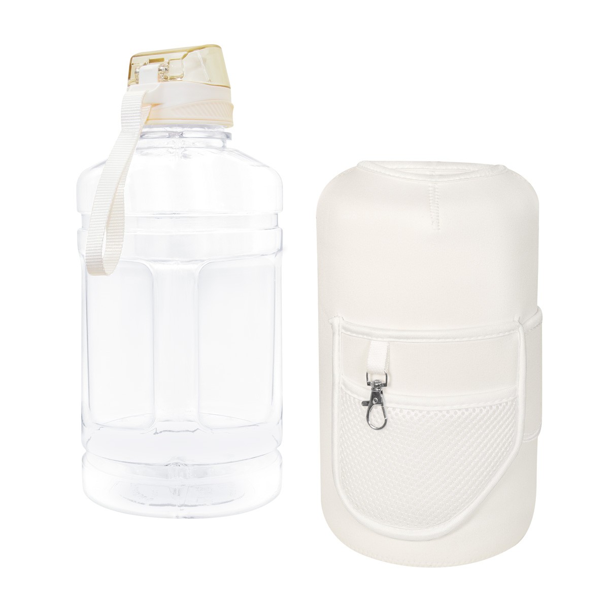 Cilindro con pared sencilla de plástico. Incluye funda removible de neopreno. Tapa de plástico con sistema de rosca y sobretapa que agrega un clip de seguridad para evitar derrames. Su tamaño esta diseñado para quienes necesitan llevar una g