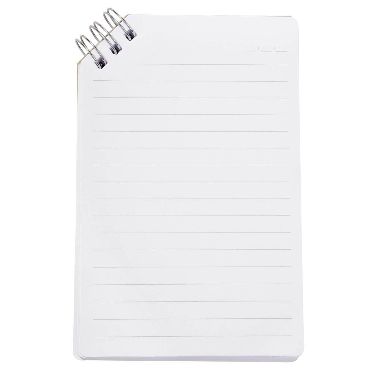 Libreta de Bolsillo ecológica con 70 hojas a rayas. Cubierta de cartón. Incluye espiral metálico y elástico para cerrar. Esta libreta no solo es amigable con el medio ambiente, si no que también destaca su estilo distintivo. El mini espiral cruzado le apo