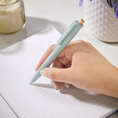 Bolígrafo con botón de madera que añade un toque ecológico. Mecanismo pulsador.