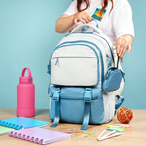 Mochila estilo casual. Incluye monedero desmontable. Su compartimento principal cuenta con un separador especial para laptop de hasta 15. Al frente, incluye un bolsillo amplio con cierre y, adicional, dos bolsillos pequeños, ideales para llevar art