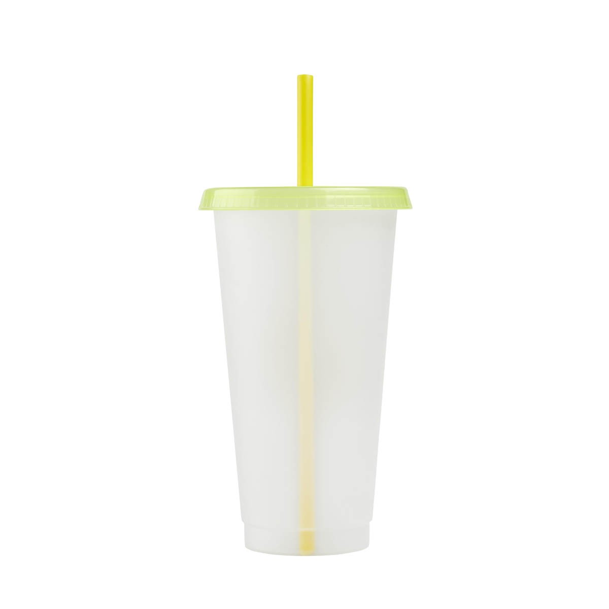 Vaso de plástico de una pared. Añade fantasía y diversión, con el cambio de color al llenar con bebidas frías. Su tapa y el popote coinciden con el tono que el vaso revela al enfriarse, creando un conjunto armonioso y atractivo. Perfecto para quien