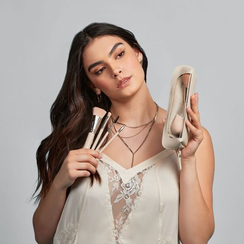 Set de maquillaje con 7 accesorios esenciales para realzar tu belleza. Incluye un elegante estuche y todo lo que necesitas para lograr un look perfecto: brochas para base en polvo, rubor, sombra, delineador de ojos y labios, esponja para base de maquillaj