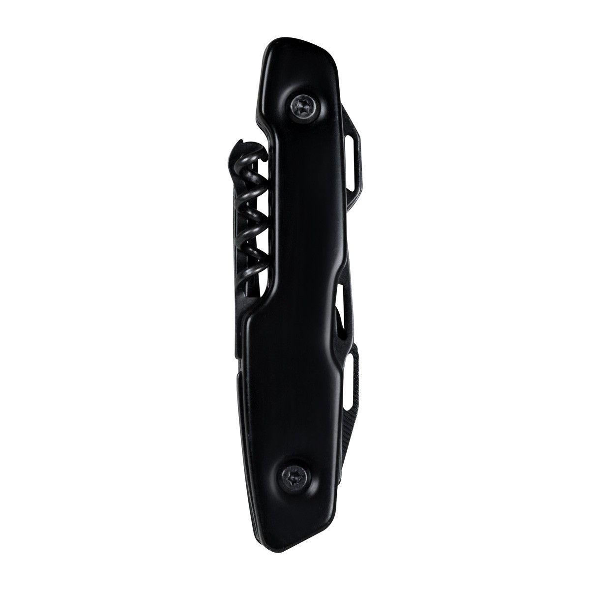 Navaja metálica con 12 funciones. Incluye 1 navaja, 1 destornillador, 1 destornillador plano, 1 destornillador pequeño, 1 abrelatas, 1 lima, 1 sacacorchos, 1 guía de hilo, 1 punzón para cuero, 1 cortador de cajas, 1 destapador y 1 cuchilla peque&nt