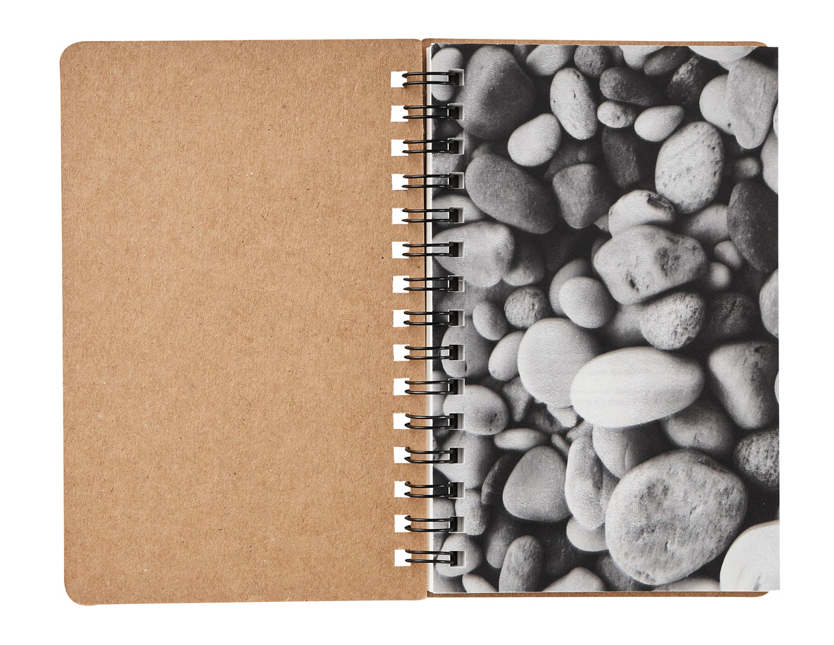 Libreta con 60 hojas de raya. Espiral metálico doble. Las hojas interiores están fabricadas a base de piedra natural. Este papel es resistente al agua, al desgarro y a las manchas.