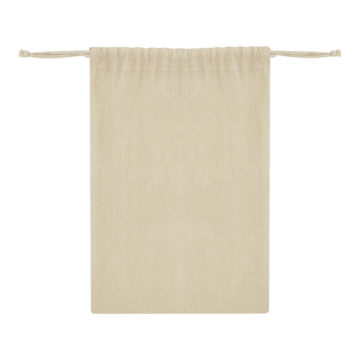 Bolsa con cierre de jareta. Fabricada con algodon natural, este accesorio ecofriendly es reutilizable, perfecto para utilizar como bolsa de regalo o para llevar pequenos accesorios.