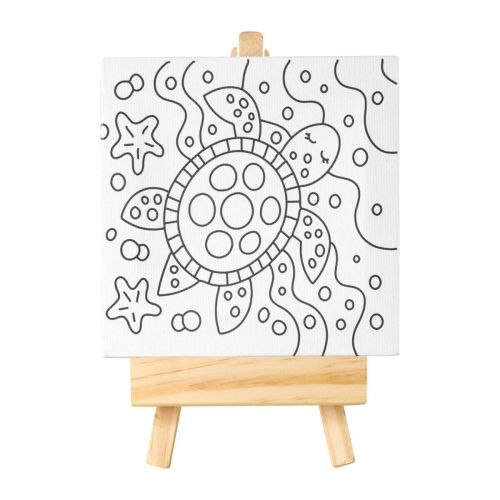 Set de pintura con lienzo que incluye un dibujo predisenado, listo para que los ninos lo pinten y le den vida con su creatividad. Tambien cuenta con un caballete de madera, un pincel y una paleta de pinturas con 6 colores diferentes. Ideal para introducir