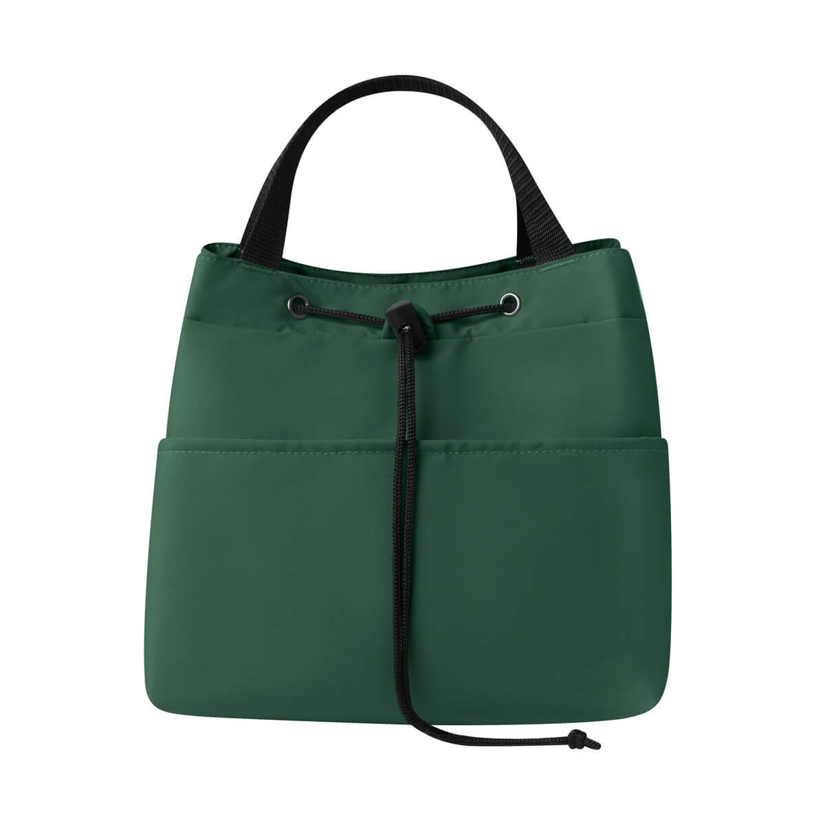 Lonchera con interior plastificado. Su compartimento principal cuenta con un cierre tipo jareta, ideal para ajustar a varios tamanos, segun cada necesidad. Su bolsillo frontal permite llevar accesorios pequenos y complementar tu lunch. Ideal para la escue