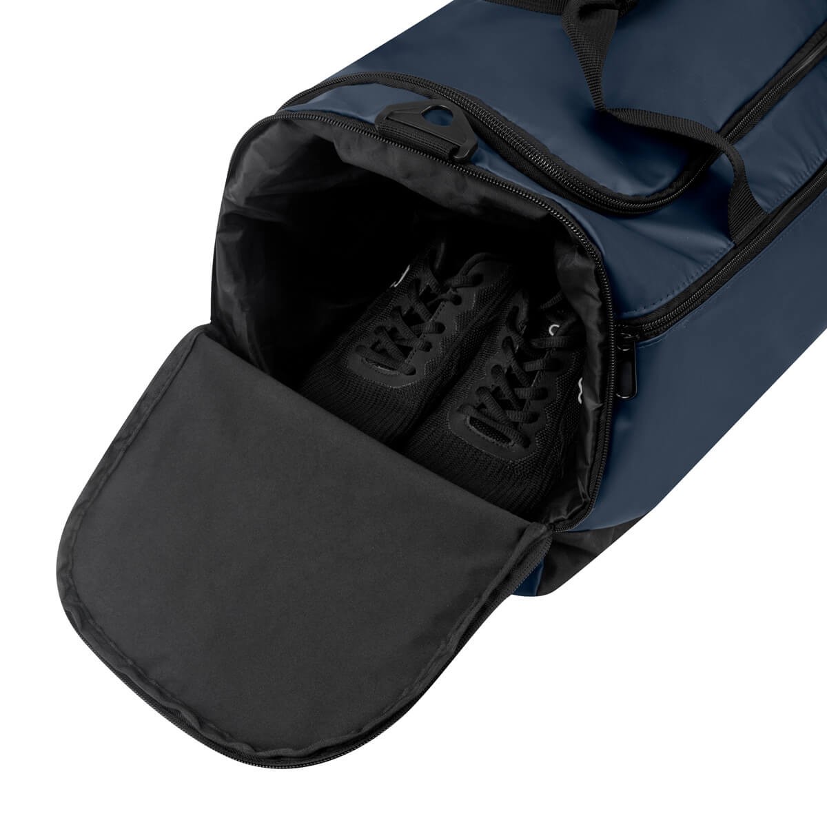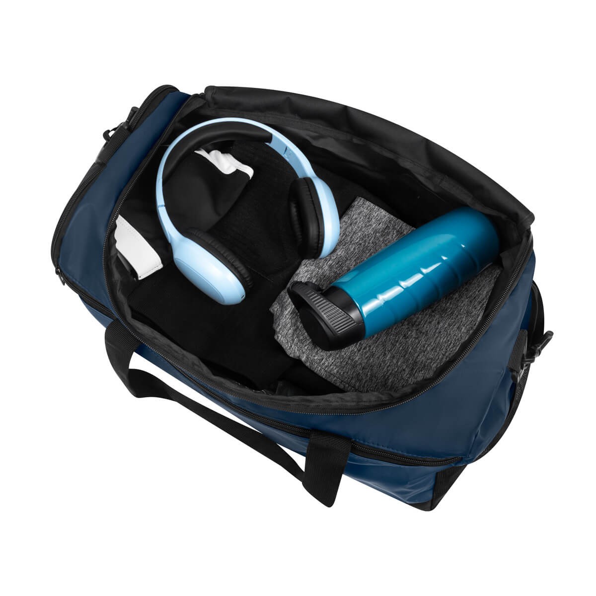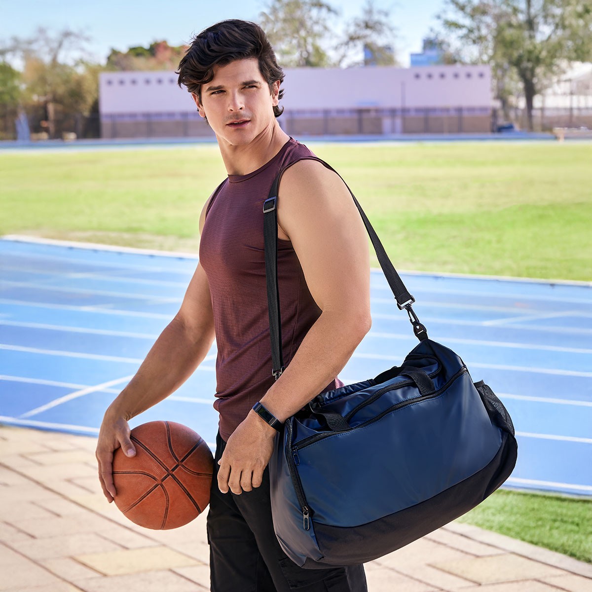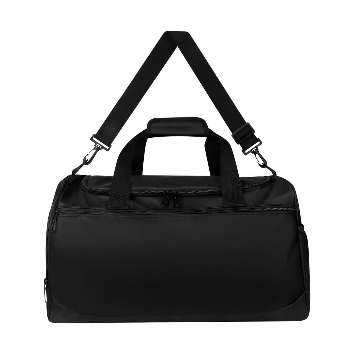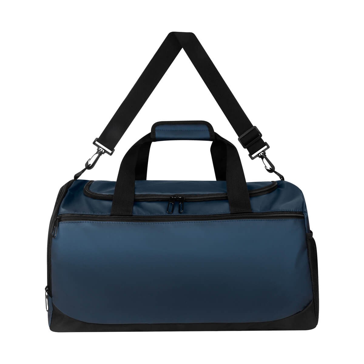 Practica maleta con amplio compartimento principal y un bolsillo frontal con cierre. Cuenta con un compartimento lateral para calzado y un bolsillo lateral de malla para objetos pequenos. Incluye correa ajustable para hombro con broches de plastico removi