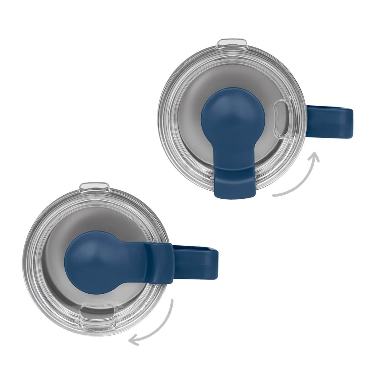 Taza doble pared. Pared interna de acero inoxidable y externa de plastico. Incluye tapa de plastico tipo push con sobretapa giratoria. Capacidad de 15 Oz. Base de 9.2 cm de diametro. Incluye caja individual.