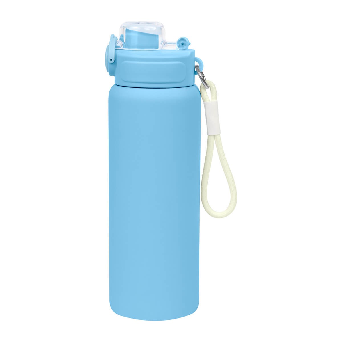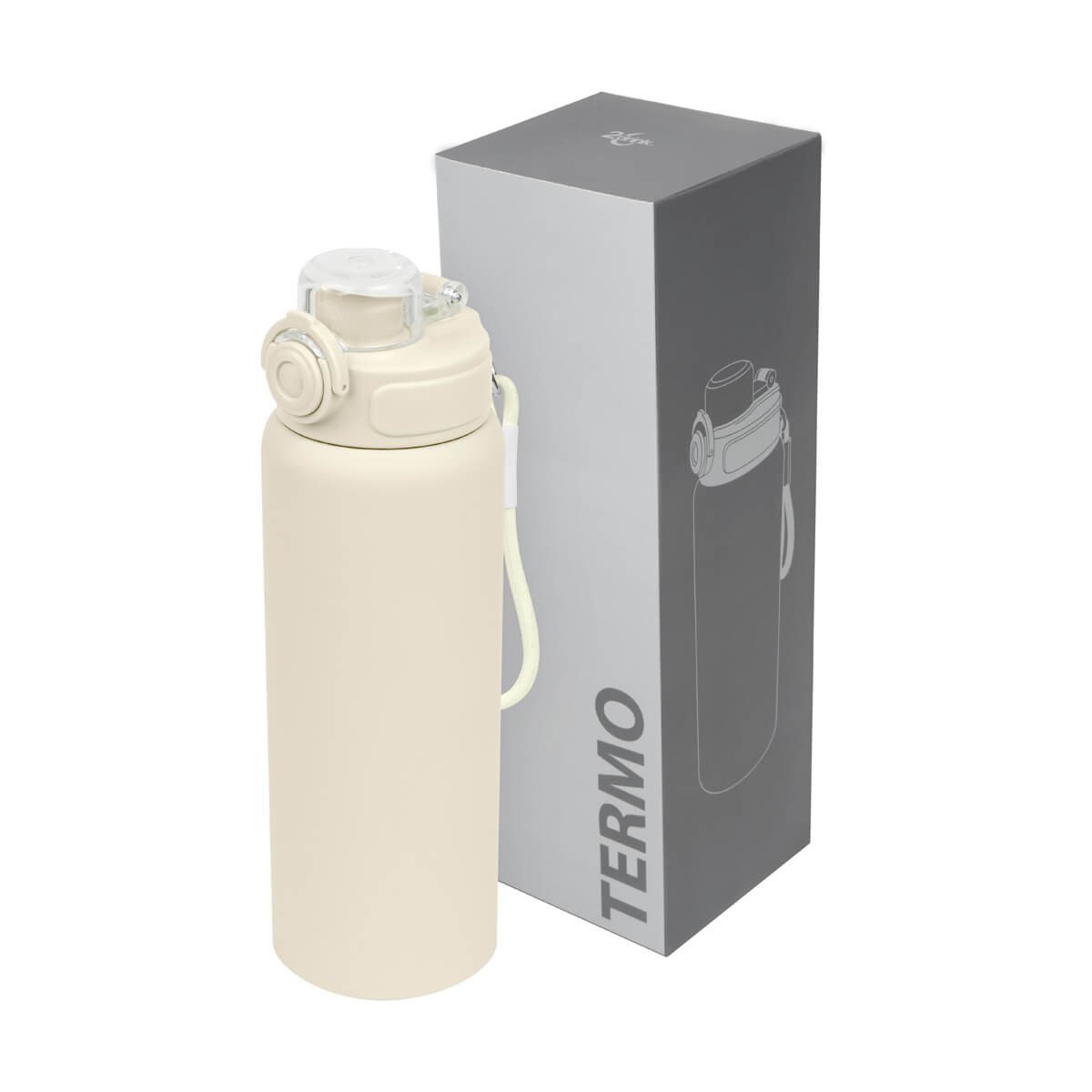 Termo doble pared. Cerrado al vacio. Pared interna y externa de acero inoxidable. Cuerpo con terminado tipo rubber, que lo hace suave al tacto. Tapa con cierre de rosca y sobre tapa tipo push para mantenerla seguro y limpio. Ademas con su nuevo diseno de